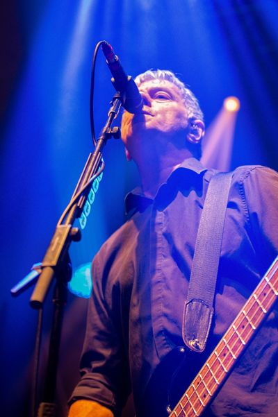 While Jim Macaulay Toby Hounsham hide at the back of the stage raised up behind drums and Keyboards, Guitarist and Vocalist Baz Warne and founding member, vocalist and bassist Jean-Jacques Burnel bounce onto the stage to their trademark theme Waltzinblack, hopping from foot to foot, pulling faces sticking their tongues out and grinning in what can only be described as a cheeky impish mood, they’re kids on their own personal playground where every toy is theirs and every eye is on them.